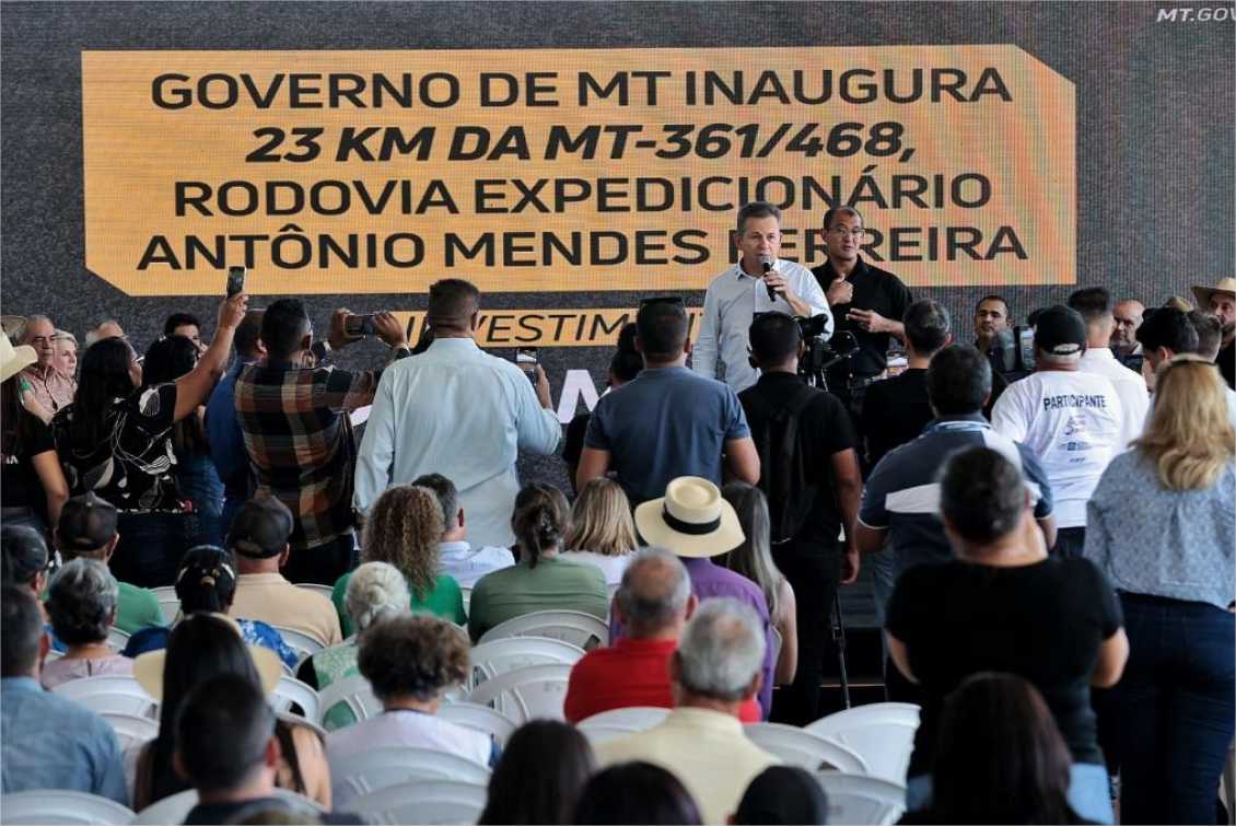 O governador Mauro Mendes se emocionou durante a cerimônia de entrega de 57 quilômetros de asfalto novo nas MTs-361 e…