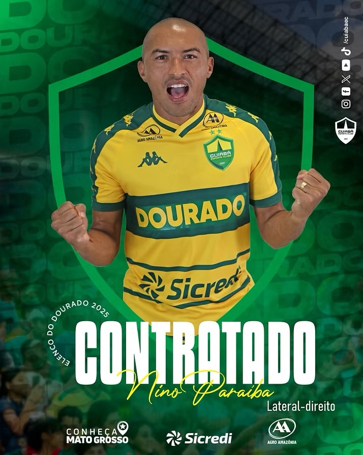 O Cuiabá oficializou neste sábado (2) a contratação do lateral-direito Nino Paraíba, de 39 anos. O jogador já se apresentou…