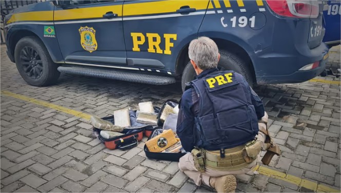 Durante os procedimentos de encaminhamento da menor, os policiais rodoviários federais localizaram, no interior das malas que ela utilizava, 15 (quinze) tabletes de susbtância análoga a maconha, que totalizaram 14,7kg, além de 2 (dois) tabletes de substância análoga a crack, num total de 2kg.
