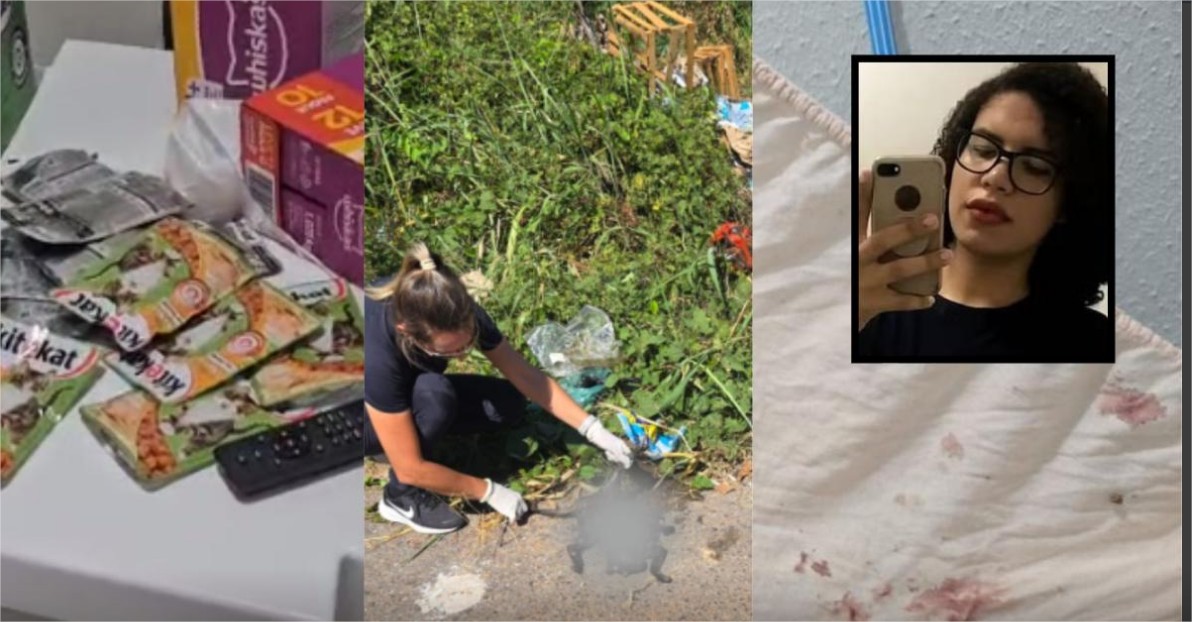 Laudo da Perícia Oficial e Identificação Técnica (Politec) feito a partir do cadáver de gato encontrado em saco plástico em terreno baldio próximo à residência de Larissa Karolina Silva Moreira, constatou lesão extensa na cabeça do animal, lesão na região perianal com presença de orifício ou laceração sugestiva de possível trauma, e ainda, material plástico amarrado ao redor do pescoço do animal, indicativo de asfixia.