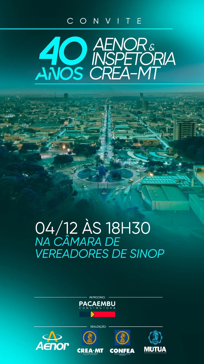 A Associação dos Engenheiros e Agrônomos do Norte de Mato Grosso (AENOR) e a Inspetoria do CREA-MT em Sinop realizam,…
