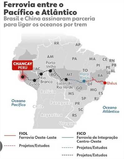 Brasil e China firmam parceria que prevê ferrovia passando em MT
