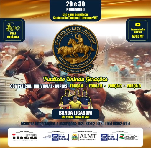 Nos dias 29 e 30 de novembro, a Baixada Cuiabana está convidada para a 17ª edição da Festa do Laço…
