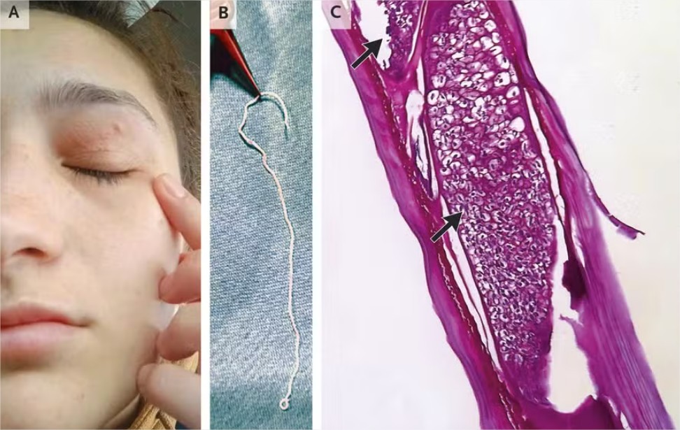 Uma mulher de 26 anos, residente na Romênia, teve um verme redondo vivo e com 11 cm de comprimento removido…
