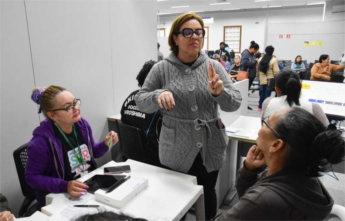Por meio da atuação dos intérpretes da CIL, o mutirão proporciona um ambiente acessível e acolhedor, permitindo que pessoas surdas possam realizar o cadastro no programa e buscar informações de forma clara e eficiente.