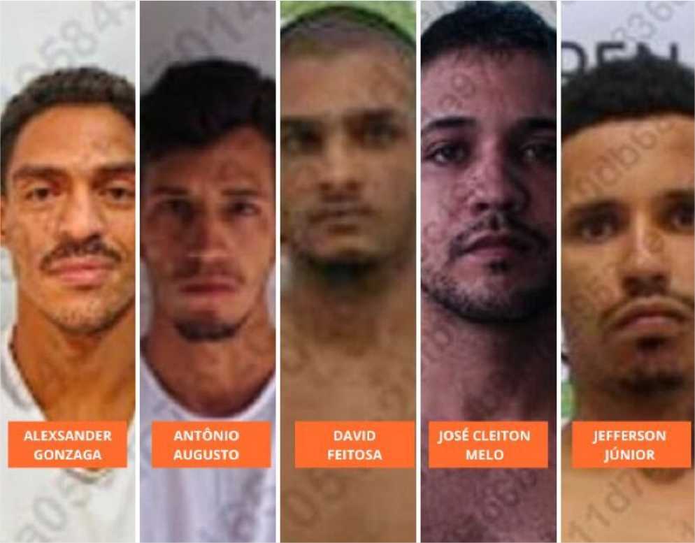 Os homens foram identificados como: Antônio Augusto de Moraes Araújo, de 30 anos, preso por homicídio qualificado; Alexsander Gonzaga da Silva, de 34 anos, preso por tráfico, associação para o tráfico de drogas, homicídio e roubo qualificado; David Feitosa de Lima, de 26 anos, que responde por crime de roubo qualificado; Jeferson Junior Ribeiro Farias, 23 anos, preso pelos crimes de tráfico, homicídio e adulteração de arma de fogo; José Cleiton Melo da Silva, 28 anos, preso pelos crimes de homicídio e roubo qualificado.
