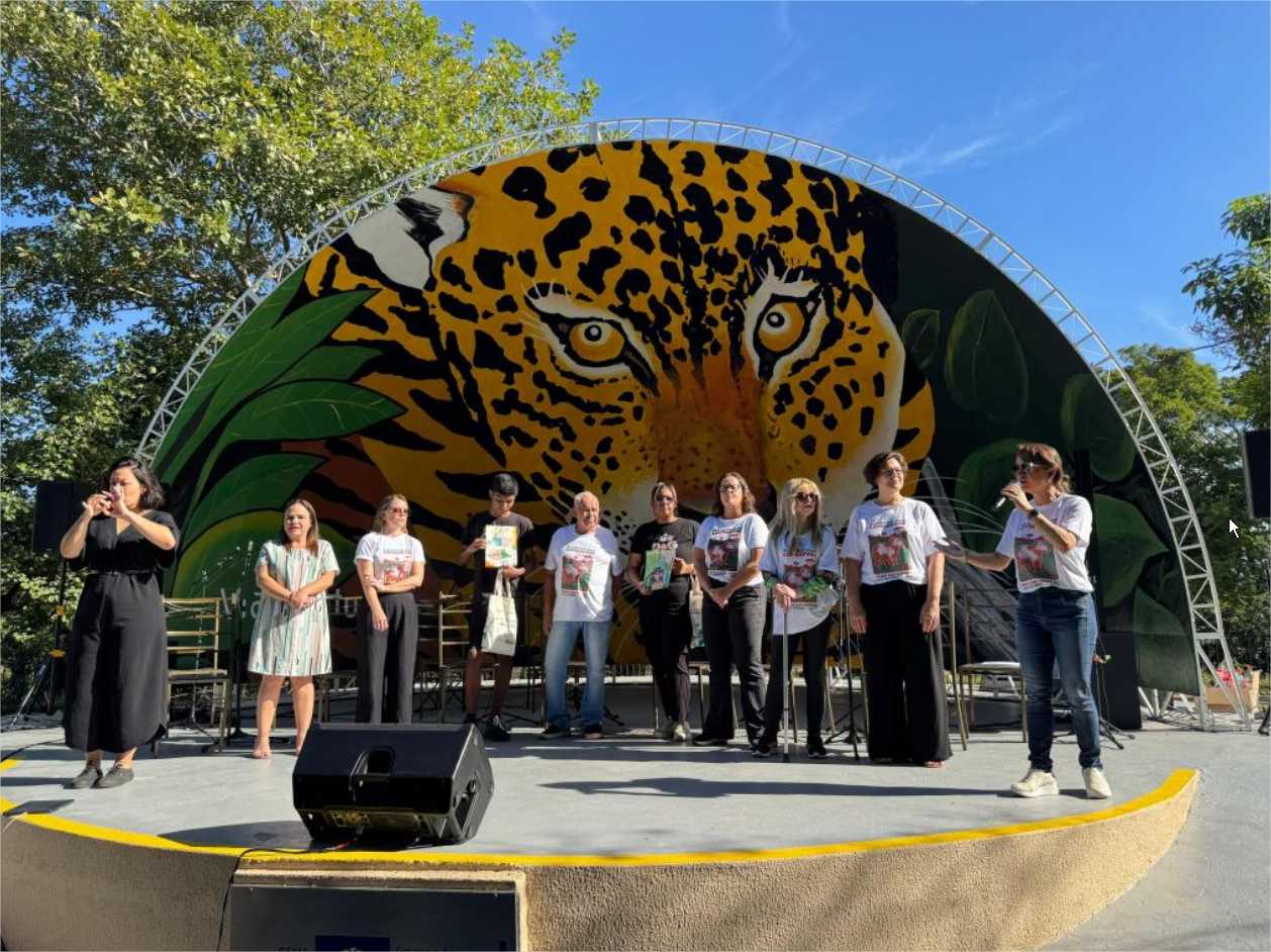 O fundo da concha acústica passa a contar com a pintura de uma onça gigante. “A onça é a protetora da floresta, dos animais, ela tem o domínio sobre todas as partes da floresta. É um animal muito bonito que representa a nossa fauna pantaneira. Deu muito trabalho, mas foi muito gratificante”, ressaltou o artista plástico.