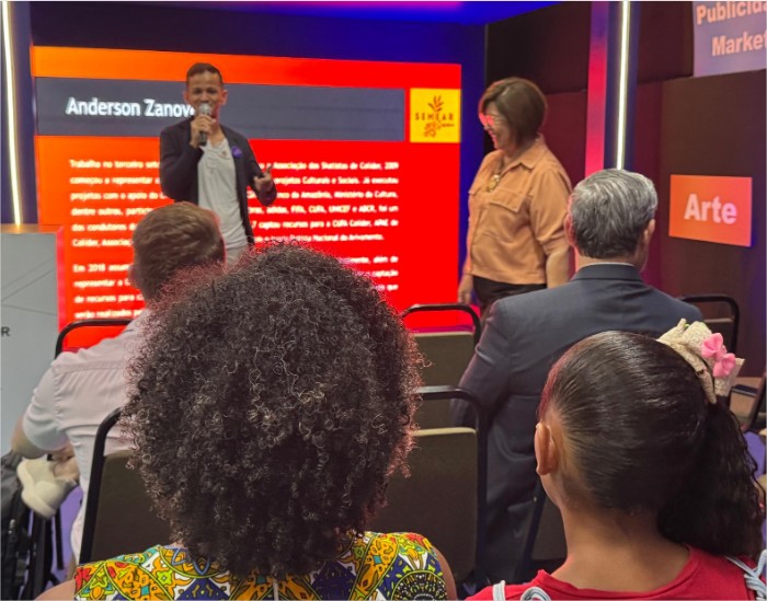 Com o tema, “18 maneiras de captar recursos para causas”, Anderson compartilhou estratégias e insights valiosos com empreendedores sociais e culturais. Além dele, a CUFA-MT foi representada pelas palestrantes Milena Vilar falando sobre “Media Training para Empreendedores”, e Joyce Lombardi, que abordou o tema “Arte como Negócio: Teatro e Cultura no Empreendedorismo Criativo”.