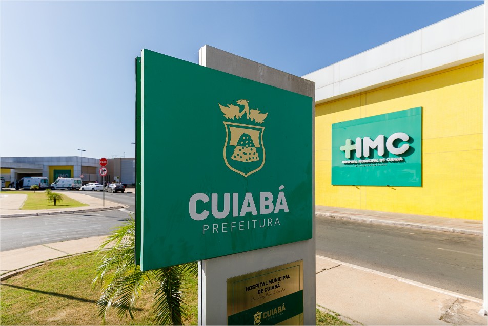 A foto mostra a fachada do Hospital Municipal de Cuiabá (HMC), em Cuiabá.