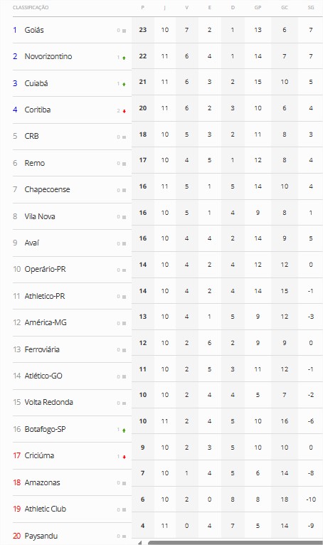 Na 12ª rodada, o Cuiabá visita o Novorizontino no próximo domingo, dia 15, às 16h, Já o Paysandu recebe o Botafogo-SP na sexta-feira, dia 13, às 21h35. (GE)