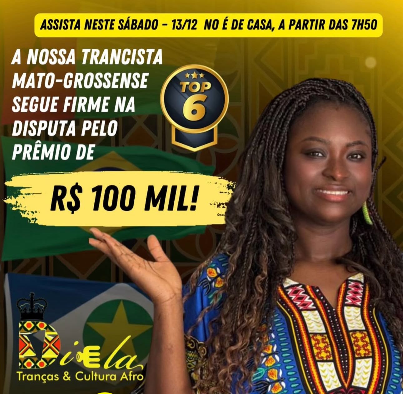 A empreendedora Diela Tamba Nhaque, natural de Guiné-Bissau e moradora de Várzea Grande, avançou para o Top 6 do “Expo Favela – O Desafio 2025”, reality exibido pelo programa É de Casa, da TV Globo. Ela superou a primeira fase da competição, que começou com dez selecionados de várias regiões do país e já eliminou quatro participantes, garantindo a permanência entre os destaques nacionais do empreendedorismo periférico.