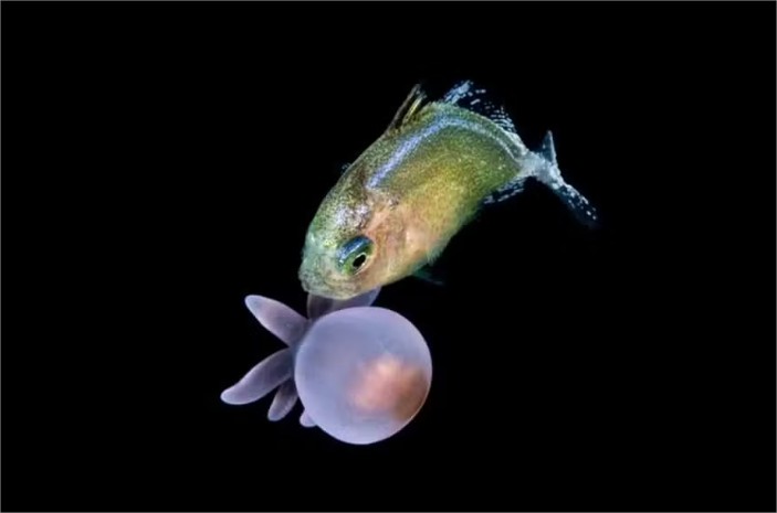 As imagens que revelaram o comportamento foram capturadas durante mergulhos noturnos em águas profundas, uma técnica conhecida como fotografia de águas negras. Nesse tipo de mergulho, os cientistas derivam à noite em mar aberto para registrar organismos pelágicos, que são seres que vivem suspensos na coluna d’água.