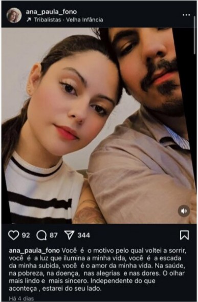 Na publicação, Ana Paula escreveu que o homem, que viria a ser seu algoz, era a luz que iluminava sua vida e motivo pelo qual ela havia voltado a sorrir.