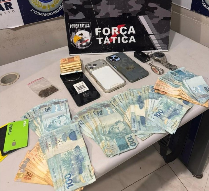Policiais militares da Força Tática do 1º Comando Regional apreenderam, na noite desta sexta-feira (7.11), R$ 11 mil em espécie, durante abordagem no bairro Parque Geórgia, em Cuiabá. Na ação, um homem, de 24 anos, foi preso em flagrante suspeito por estelionato.