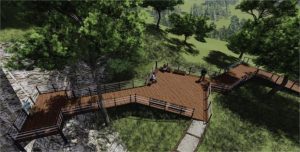 Haverá um plataforma de contemplação no caminho e a trilha terminará em deck metálico, na garganta da gruta. Serão implantadas escadas em trechos de maior inclinação, para garantir a segurança dos visitantes.