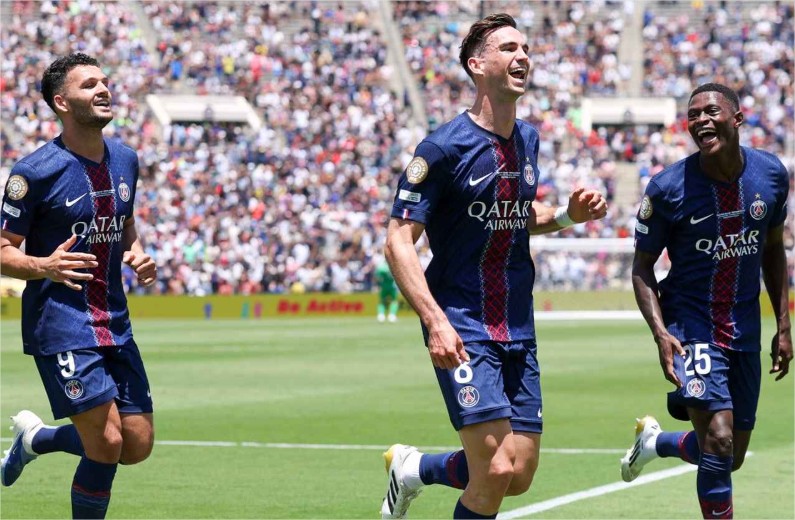 Os gols foram de Fabián Ruiz e Vitinha, no primeiro tempo, e Mayulu na etapa final. O Atletico chegou a ter um gol, com Álvarez, mas anulado pelo VAR. E teve um jogador expulso, Lenglet.