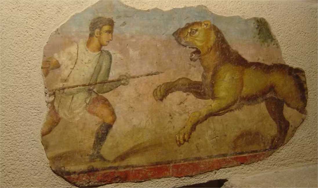 O que sugere um ataque de felino é a forma e a profundidade das marcas de mordida no corpo do homem que tinha entre 26 e 35 anos na hora da morte. Escavado em 2004 e 2005, ele pode ser tanto um gladiador treinado que lutou contra o felino quanto um homem condenado à morte, que teria lutado sem armas ou amarrado a um poste.
