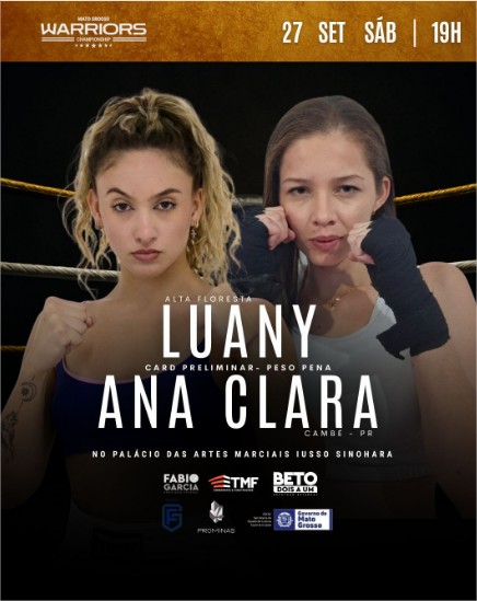 Ana Clara Montini, do Paraná, enfrentará Luany Rocha, representante de Mato Grosso, no card preliminar peso pena (até 65 kg). O combate será um dos destaques da noite, que contará com 12 lutas casadas dos masculino, sendo duas valendo cinturão.