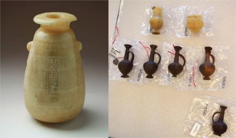 Dentre os saques feitos à tumba, uma chama a atenção: em uma das duas vezes, o alvo foram as substâncias desses recipientes. Os ladrões transferiram metodicamente os materiais orgânicos para sacos portáteis, raspando o interior dos recipientes manualmente para extrair todos os vestígios.