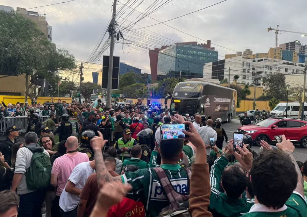 O Palmeiras chegou a Lima, no Peru, na noite desta quarta-feira. O time enfrentará o Flamengo, no próximo sábado, às 18h (de Brasília), pela final da Conmebol Libertadores.