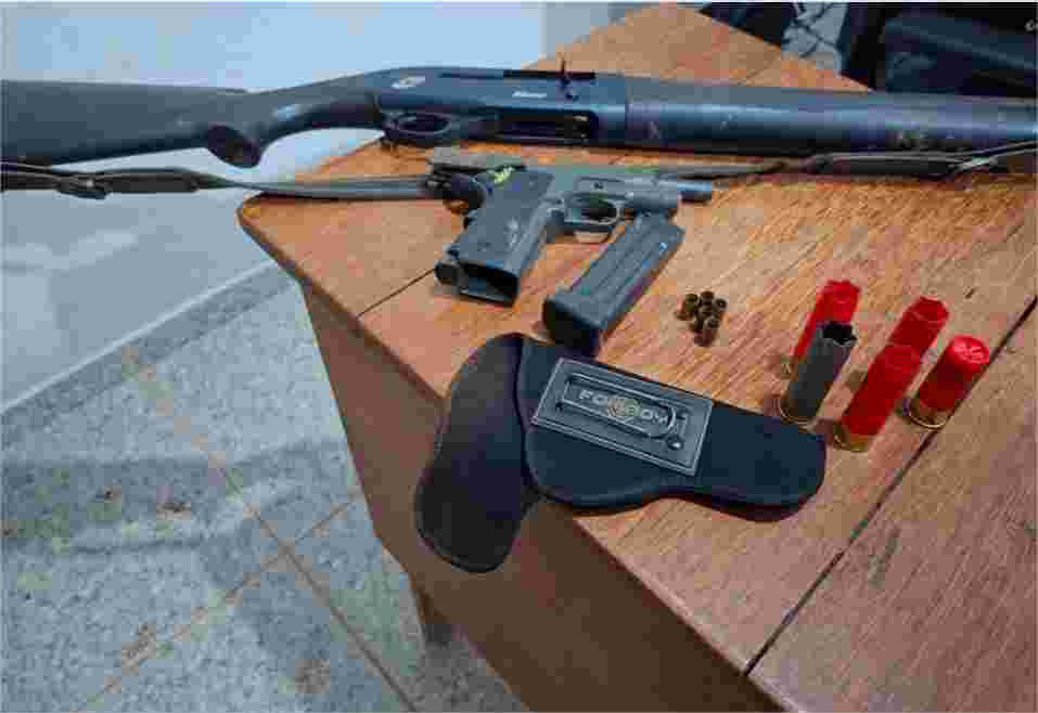 Ainda na verificação do veículo, foram encontradas uma espingarda e uma pistola, além de munições para o armamento. Questionado pela PM, ele confessou ter efetuado os disparos, mas não revelou por qual motivo teria cometido a tentativa de homicídio.