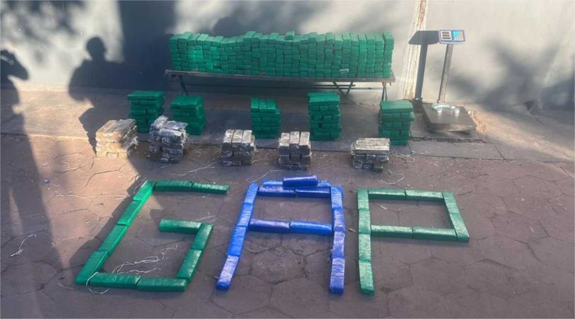 Durante busca veicular, os policiais militares localizaram 299 tabletes de substância análogas à maconha. O homem relatou que o proprietário das drogas teria deixado mais barras do mesmo entorpecente em uma oficina, localizada no bairro Páscoa Ramos, em Cuiabá, com outros quatro homens. A droga estaria armazenada nos fundos do estabelecimento comercial.