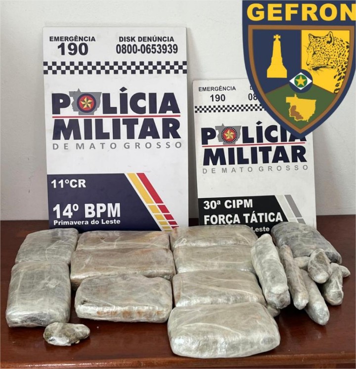 Policiais militares do 11º Comando Regional prenderam um homem, de 25 anos, por tráfico ilícito de drogas, na rodovia MT-130, em Primavera do Leste. Com o criminoso, foram apreendidos oito quilos de substância análoga à supermaconha (skank).
