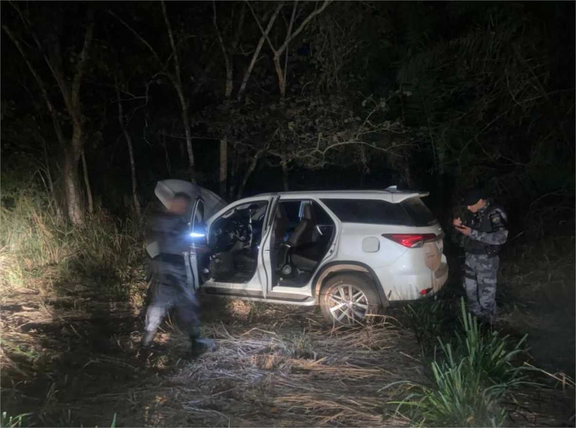 Diante da denúncia, as equipes intensificaram o policiamento na região e abordaram a dupla no local. Questionados sobre a denúncia, os homens confessaram a participação em várias ações criminosas no município. Um deles relatou que escondeu a caminhonete SW4 no distrito de São Lourenço, junto com outros materiais roubados.