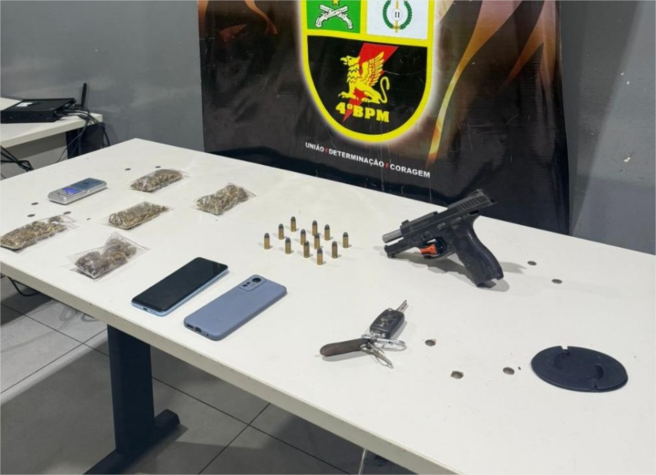 Os militares se deslocaram até uma residência no bairro José Carlos Guimarães, indicada nas informações recebidas, onde uma mulher morava com alguns homens e a movimentação levantava suspeitas. No local, os policiais flagraram a suspeita com cinco porções de maconha e uma balança de precisão.