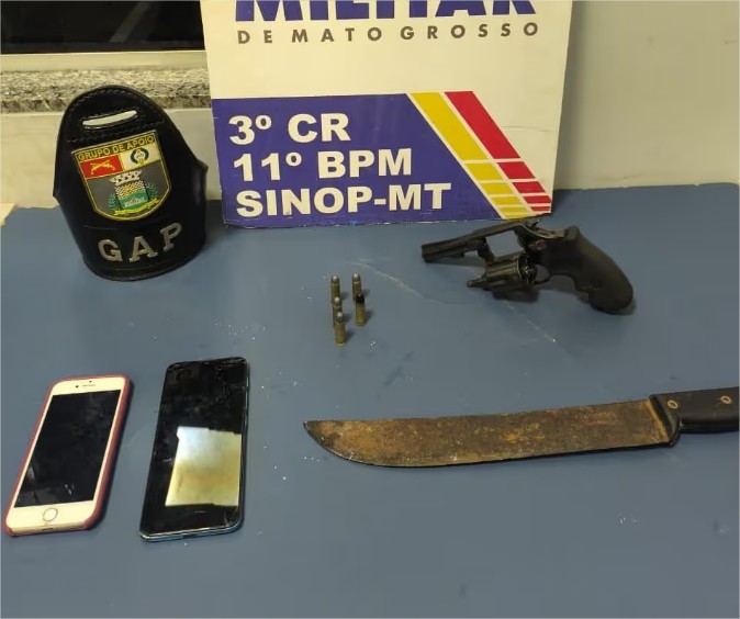 Durante buscas pelo cativeiro, os policiais militares apreenderam um revólver calibre .38, cinco munições, um facção e dois aparelhos celulares. Os suspeitos foram encaminhados à delegacia para registro do boletim de ocorrência.