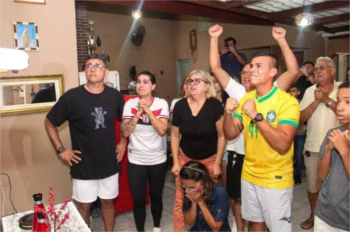 Às lágrimas de alegria, a família comemorou e parecia conquista de Copa do Mundo.