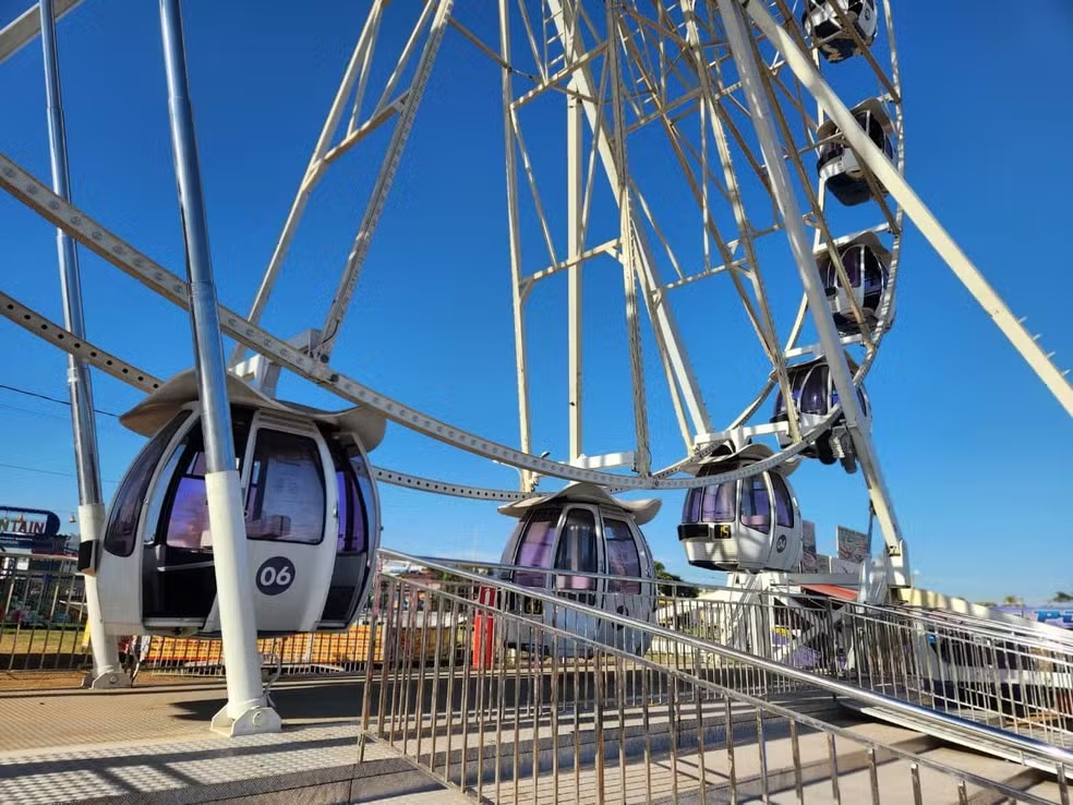 A roda-gigante instalada na feira de exposição agropecuária em Cuiabá foi liberada para funcionar nesta sexta-feira (18), dois dias após ter sido evacuada devido a um incêndio. O incidente ocorreu na última quarta-feira (16), quando o brinquedo pegou fogo durante o evento. Ninguém ficou ferido.
