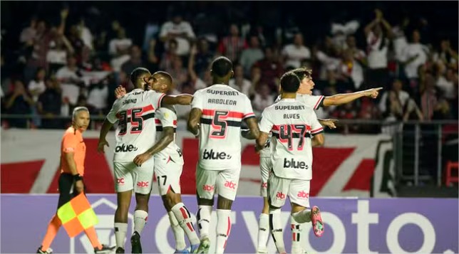 São Paulo e Talleres ficaram no empate por 1 a 1 na primeira etapa do Morumbis, ambos com um gol originado em bola parada que contou com a análise do VAR para ter confirmação. O do São Paulo saiu numa cobrança de falta de Bobadilla que André Silva desviou de cabeça na entrada da área, e Sabino completou. O gol de empate, também depois de uma falta, saiu num chute de Depietri que parou nos pés de Girotti. O camisa 9 bateu firme, sem chance para Rafael. Mesmo com maior volume de jogo, o São Paulo msotrou dificuldade para criar chances claras. Lucas Ferreira, num chute cruzado, desperdiçou a melhor chance fora o lance do gol.