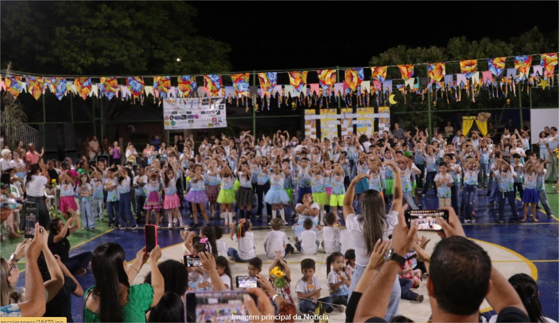 Alunos da Educação Infantil ao 5º ano do Ensino Fundamental participaram com apresentações e danças, tornando a noite especial. O evento foi encerrado com uma apresentação final que reuniu todos os alunos, professores e auxiliares, reforçando a união da comunidade escolar.