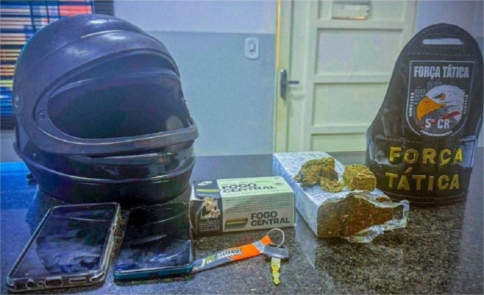 Os militares ainda apreenderam um tablete de maconha pesando aproximadamente 700 gramas. Uma mulher relatou que o local armazenava o material a pedido de um quarto indivíduo, apontado como um dos executores do homicídio.