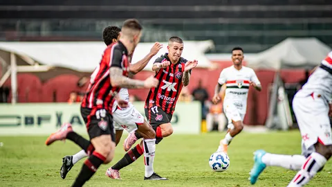 O passar do tempo aumentou a urgência do resultado para o Vitória, que levou perigo pela direita com Erick, mas a finalização foi para para fora. O jogo ficou morno até os 23 minutos, quando o time da casa abriu o placar. Depois roubada de bola pela esquerda, Fabri ajeitou para Baralhas chegar livre dentro da área e finalizar com calma para fazer o gol que salvou o Leão. O São Paulo passou a ficar mais com a bola e ocupou o campo rubro-negro depois de recuo dos mandantes, mas encontrou dificuldade para furar o bloqueio e não criou chances perigosas. Ao menos a derrota do Bragantino para o Internacional confirmou a oitava posição para o time paulista.